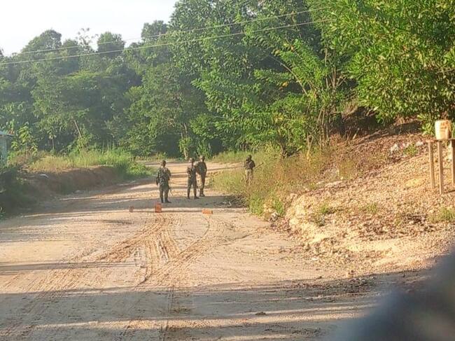 En este punto los soldados del Batallón de Ingenieros de Construcción N.° 50 adelantan labores de adecuación y pavimentación, por lo que se logró ubicar este explosivo que habría sido instalado cerca a una vivienda, al parecer para generar zozobra en la comunidad y evitar el desarrollo de esta obra de infraestructura.