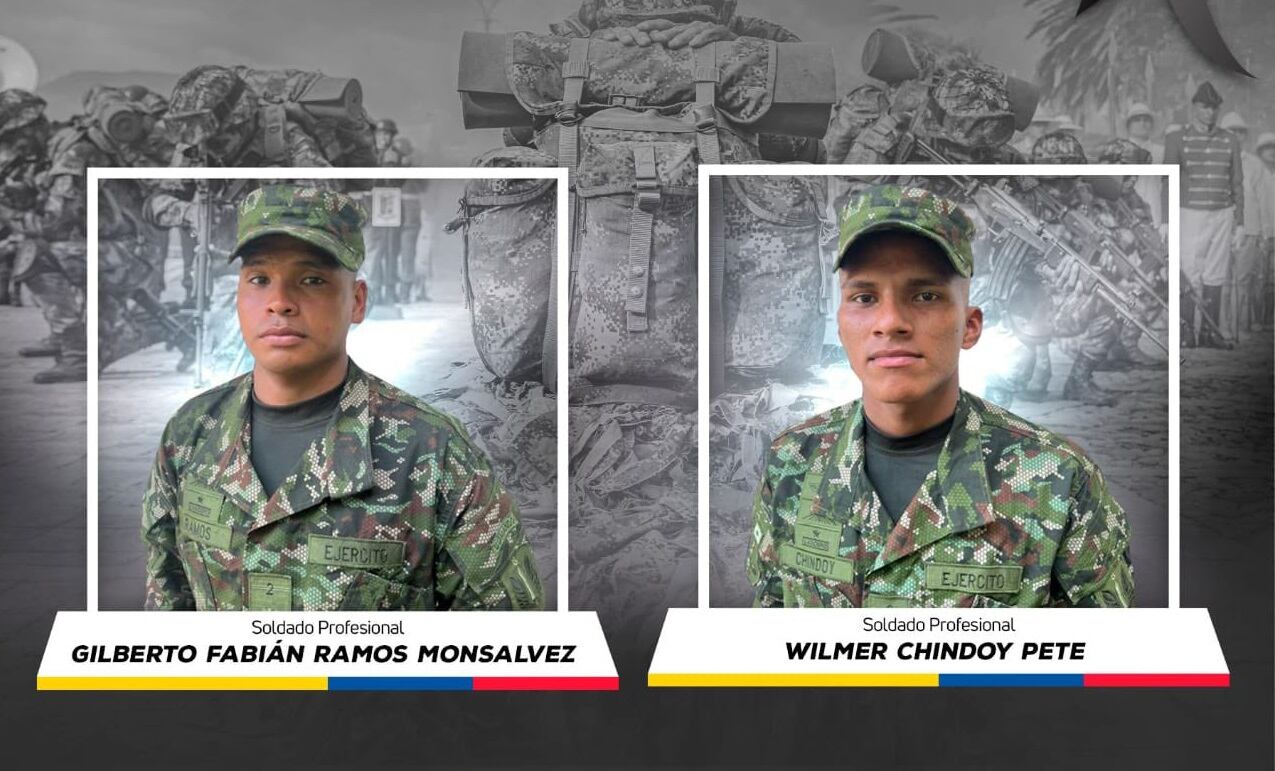 Como consecuencia de la cobarde acción criminal, fueron asesinados los soldados profesionales Wilmer Chindoy Pete y Gilberto Fabián Ramos Monsalve. Otro uniformado también resultó herido por arma de fuego y está siendo evacuado hacia un centro asistencial.