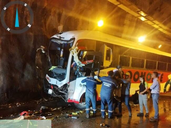 Tres lesionados dejó el choque de un bus y un camión en el túnel vial de Hidroituango