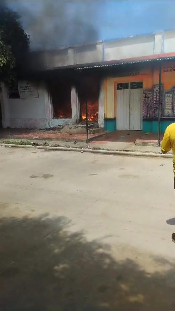 La protesta comenzó muy temprano desde el puente de la entrada al pueblo y luego se trasladó a la Registraduría en donde quedo registrado, en video, el momento en que un hombre arroja gasolina y enciende un fósforo, a pesar de que había policías y funcionarios dentro de la sede.
