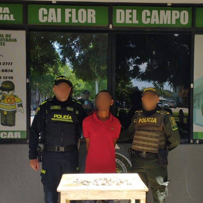 En otro extremo de la ciudad, en el barrio Flor del Campo, calle principal, fue capturada una persona de 21 años, conocida como ‘El Lucho’, a quien le fueron encontradas 80 dosis de marihuana.