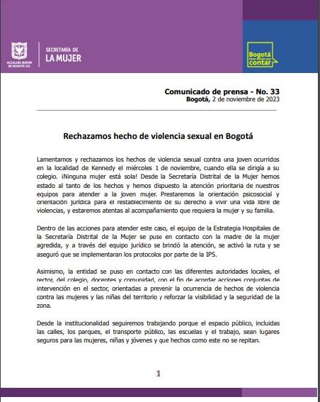La alcaldesa de Bogotá reaccionó al caso de abuso de una joven estudiante en la localidad de Kennedy y aseguró que se va a llegar al fondo del caso dando con el responsable.