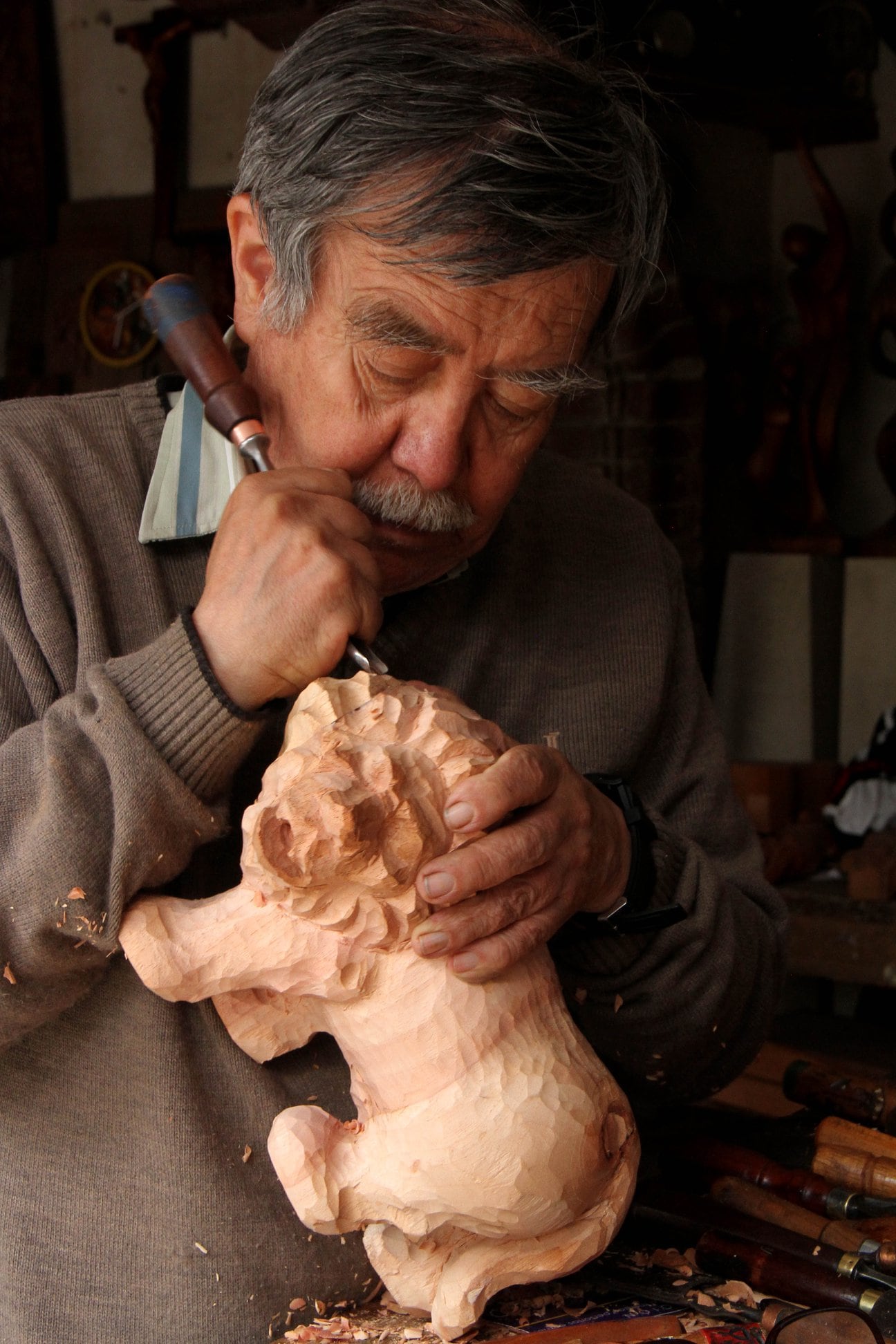Tenía trece años cuando empezó a hacer obras sencillas y luego pasó a trabajos más complejos. No recuerda cuantas obras ha tallado pero sabe que son muchas. “Cada obra tiene la personalidad de cada día y la que voy haciendo me parece la mejor”