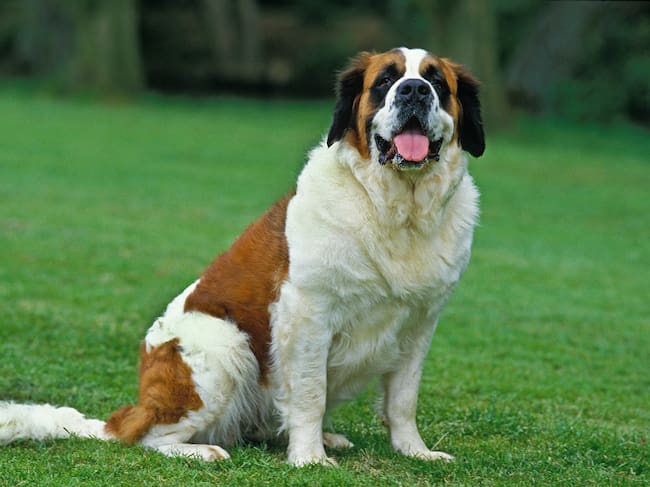Perro San Bernardo en el césped con la lengua afuera (Vía Getty Images) / slowmotiongli