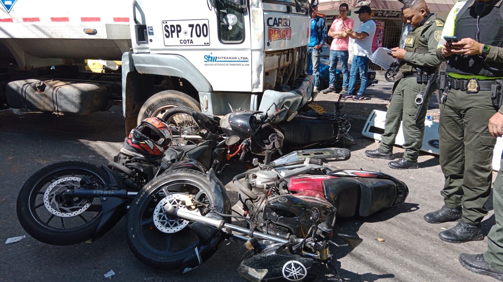 Yesid bueno, alférez de tránsito comentó que estuvieron involucrados siete vehículos, cuatro motocicletas, dos taxis y el camión.