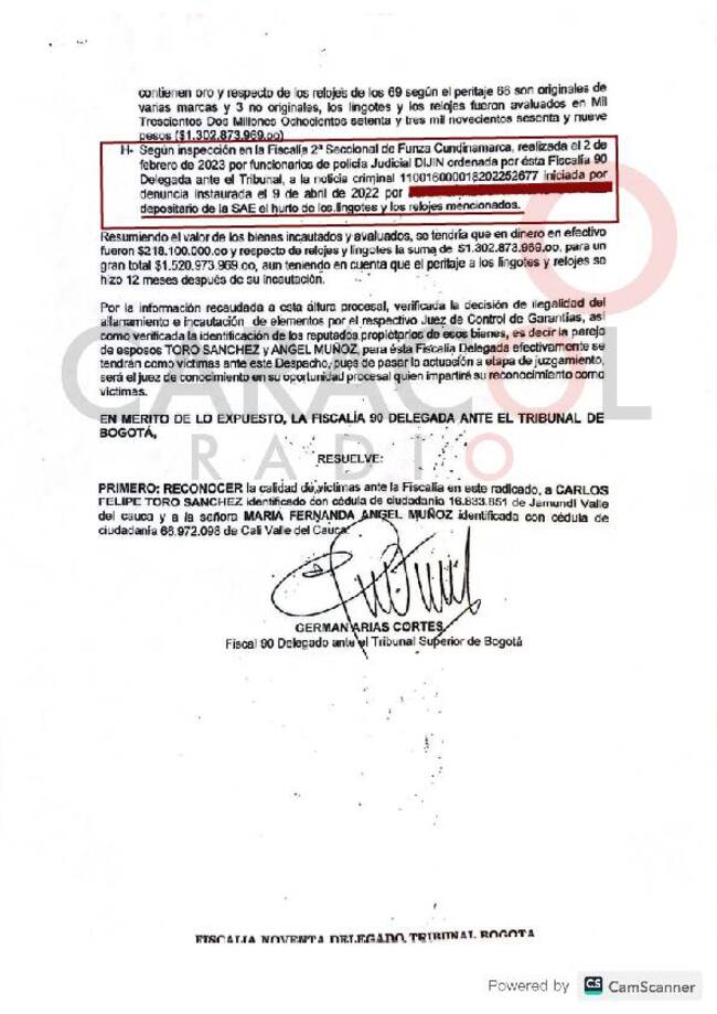 Pese a esa declaratoria de ilegalidad, un fiscal de Extinción de Dominio, guardó esa incautación sin constituir los títulos de custodia. Un año después, esos lingotes pasaron a ser latas pintadas de oro y también una colección de 69 relojes avaluados en más de $1.300 millones, tal y como consta en informes de la propia Fiscalía.