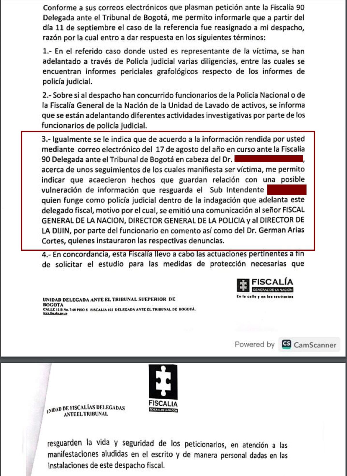 En un documento oficial de la Fiscalía quedó constancia, que trataron de vulnerar la información que resguarda el policía judicial. Por la gravedad del asunto, un fiscal anticorrupción emitió una comunicación al señor fiscal General de la Nación, al director de la Policía Nacional y al director de la DIJIN. ((VER DOCUMENTO))