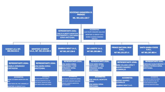Diana relató que el grupo Monster 13 constaba de 7 empresas. “Ellos vendían el negocio diciendo que era una empresa que tenía todo el ciclo económico del ganado. Estaba también Simbrah Meat .A.S que es una empresa que tiene cuatro restaurantes en Colombia: dos en Río Negro, uno en Santa Marta y uno en Cartagena; ellos no solamente eran restaurantes, sino también venden la carne del vacío. Estaba Primus Natural Barf que es toda la comida para los animalitos”.
