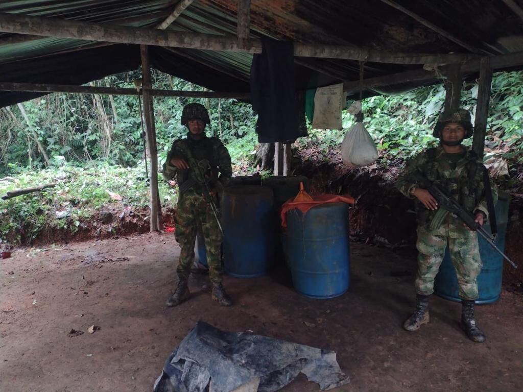 Soldados de la Décima Primera Brigada del Ejército Nacional lograron en las últimas horas la ubicación y destrucción de cuatro laboratorios para la fabricación de pasta base de coca, uno de estos en la vereda El Cerro, en San José Uré, Córdoba, presuntamente del grupo armado organizado Clan del Golfo, y tres más en zona rural del municipio de Valdivia, Antioquia, pertenecientes, al parecer, al Frente Darío Ramírez Castro de la guerrilla del ELN.