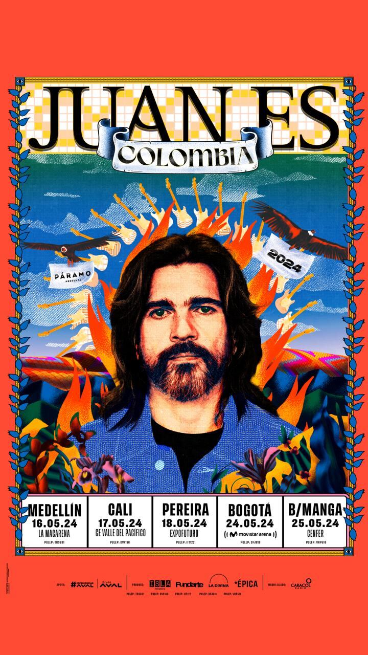 Hoy Juanes anuncia su “Juan Es Colombia Tour”, una gira por Colombia en 2024 para llevar todos sus grandes clásicos y sus más recientes éxitos a La Macarena de Medellín el 16 de mayo, al Centro de Eventos Valle del Pacífico de Cali el 17 de mayo, a Expofuturo en Pereira el 18 de mayo, al Movistar Arena de Bogotá el 24 de mayo y, Cenfer en Bucaramanga el 25 de mayo; y a partir de este 20 de noviembre se iniciará la preventa para los clientes de los Bancos Aval (Bogotá, Occidente, Popular y Av Villas) y dale!
