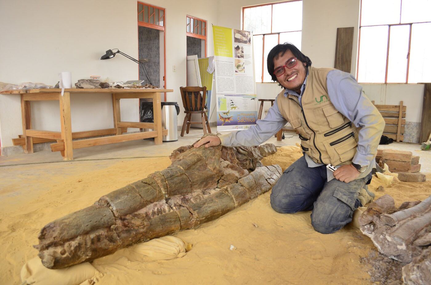 El arqueólogo boyacense Cristian Benavidez realizó el estudio del reptil marino encontrado en Sutamarchán / Foto: Cortesía