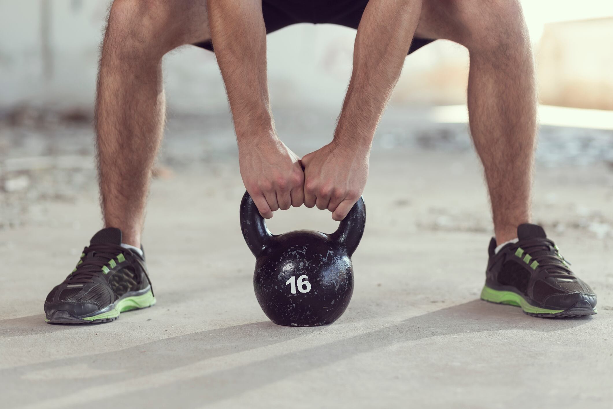 Hombre haciendo ejercicio con una pesa en sus manos (Getty Images) / vladans