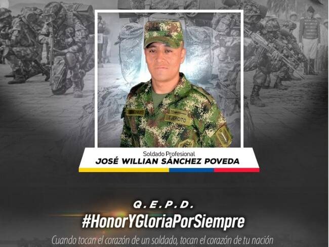 Añadió que “en este hecho fue asesinado nuestro soldado profesional José Willian Sánchez Poveda, oriundo del municipio de Murillo, Tolima y quien llevaba 13 años al servicio de la institución y del país”.