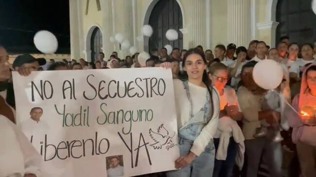 La hija del exfuncionario Lesly Sanguino lideró en las últimas horas una velatón en este municipio donde le pide a sus captores que se le respete la vida y le permitan regresar al seno de su hogar.