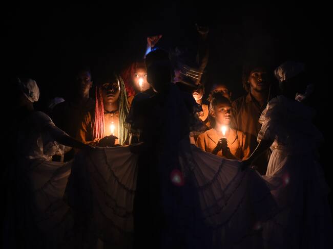 AME5940. CALI (COLOMBIA), 10/11/2023.- Artistas de la compañía Pacific Dance de Colombia presentan hoy la obra "La otredad" durante la sexta Bienal Internacional de Danza de Cali, Valle del Cauca (Colombia). EFE/ Ernesto Guzmán / Ernesto Guzmán (EFE)