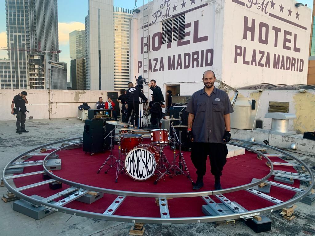Usando un dolly circular podíamos verlos a ellos cuatro tocando mientras el cielo se oscurecía, con el sol escondiéndose y la luna haciéndose brillante. Sus vestidos elegantes e impecables contrastaban con los muros decadentes que los rodeaban. Recuerdo que antes de rodar, parados todos allá arriba, había un ambiente de celebración. Los ví felices por estar en medio de su gira. Fue ahí cuando le propuse a Damiano que empujara él el dolly, que fuera él el conductor (The Driver)”, relata George Gallardo Kattah, director de los videoclips.