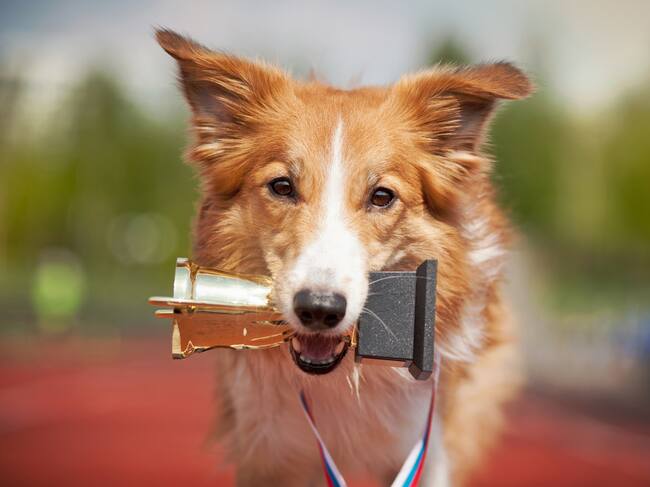 Border Collie llevando un trofeo de metal en el hocico (Getty Images) / Ksuksa