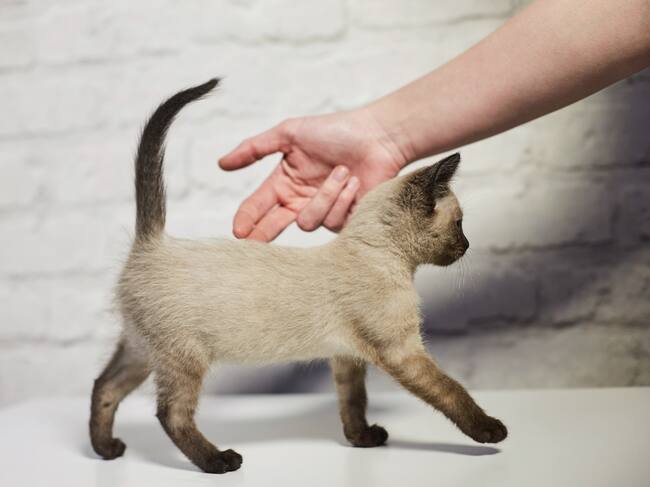 Persona intentando tocarle la cola a un gato pequeño (Getty Images) / Sally Anscombe
