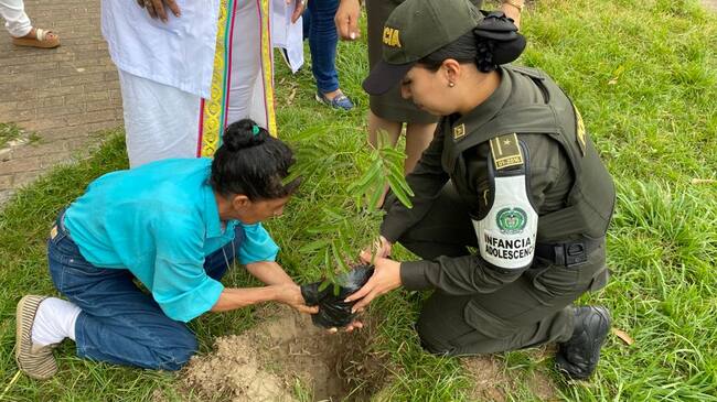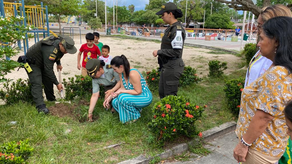 La Policía Metropolitana de Neiva, a través de su grupo de Gestión Comunitaria y autoridades político-administrativas, realizan una “Sembratón” en conmemoración al “Día Internacional de la Eliminación de la Violencia contra la mujer”.