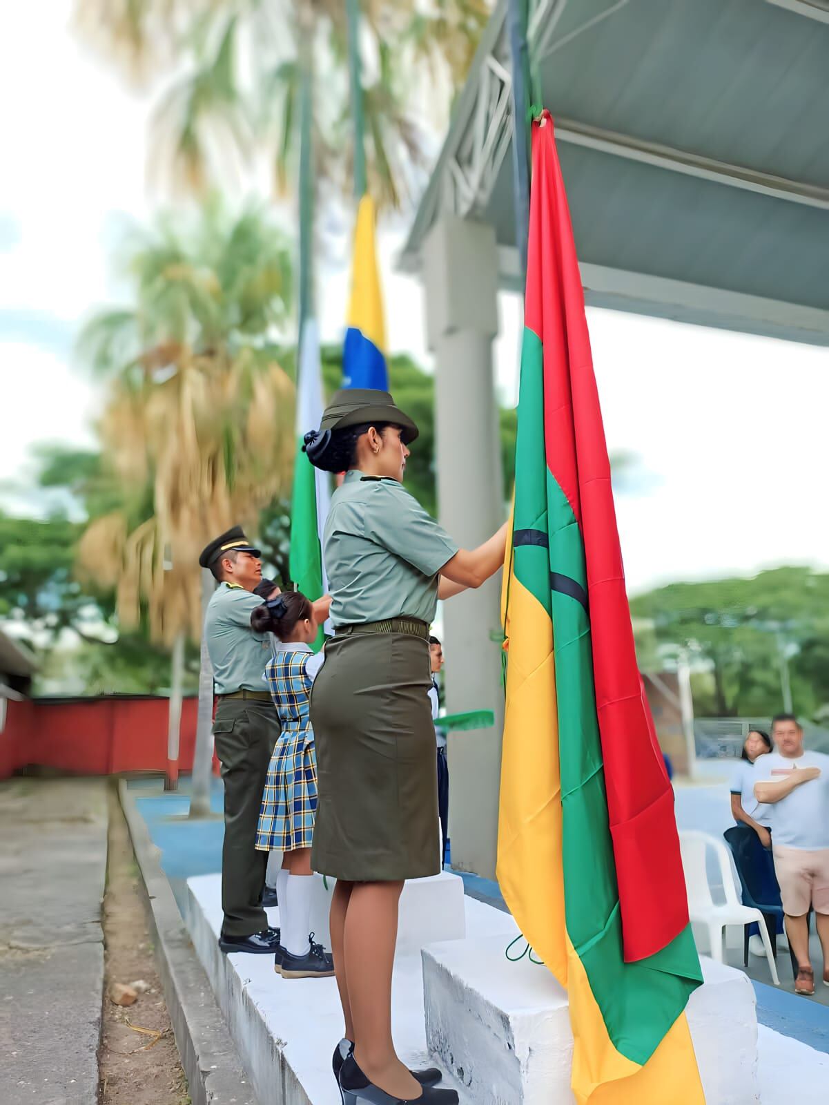 La Patrullera Andrea Peña, egresada de la universidad Surcolombiana se desempeña hoy como docente, en el colegio San Miguel Arcángel de la Policía Nacional.