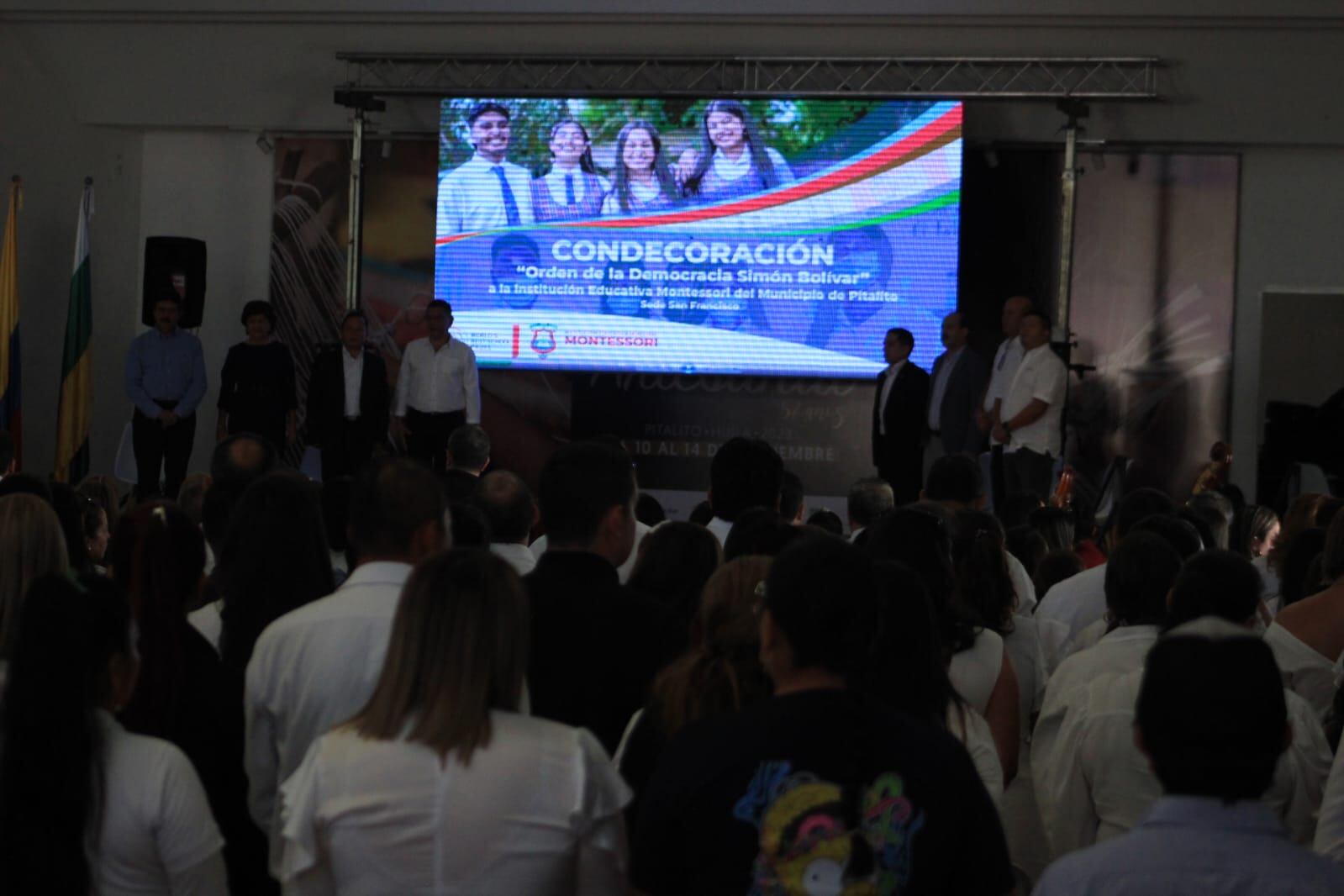 Condecoración Democracia Simón Bolívar a la I. E. Montessori, sede San Francisco Pitalito