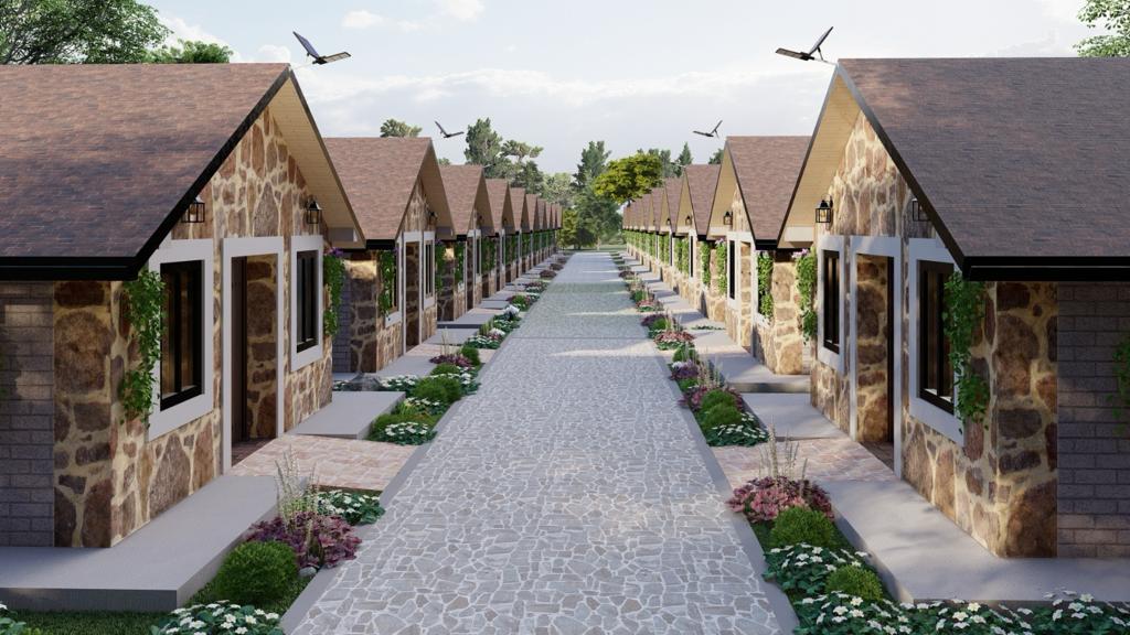 3. Arquitectura moderna en perfecta armonía con suaves trazos medievales, donde la piedra será protagonista tanto en las fachadas de las cabañas como en el sendero principal del centro vacacional.