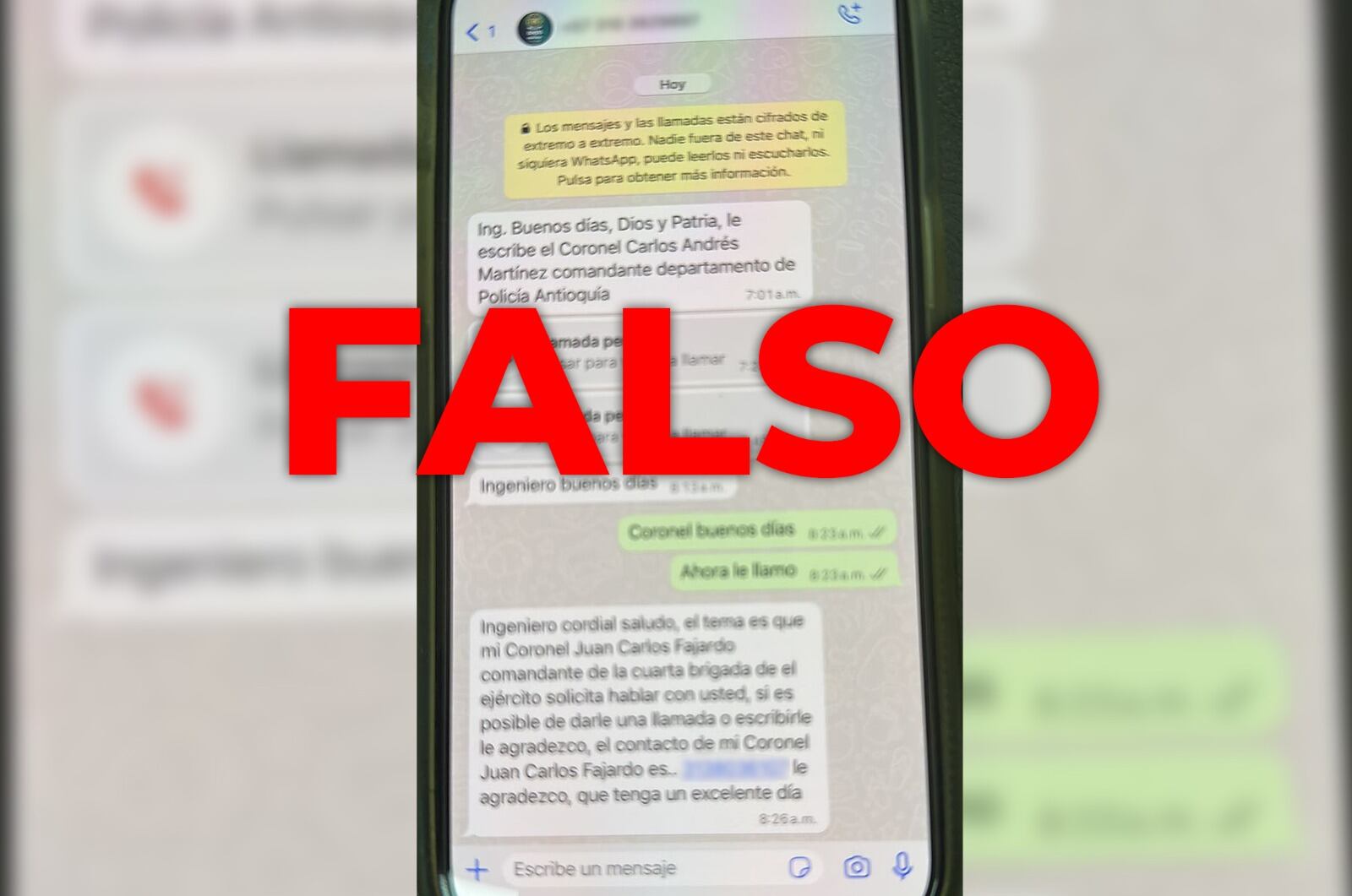 Desde la Policía Antioquia aseguraron que la información es completamente falsa y que muy probablemente sea utilizada para tratar de estafar a la ciudadanía.