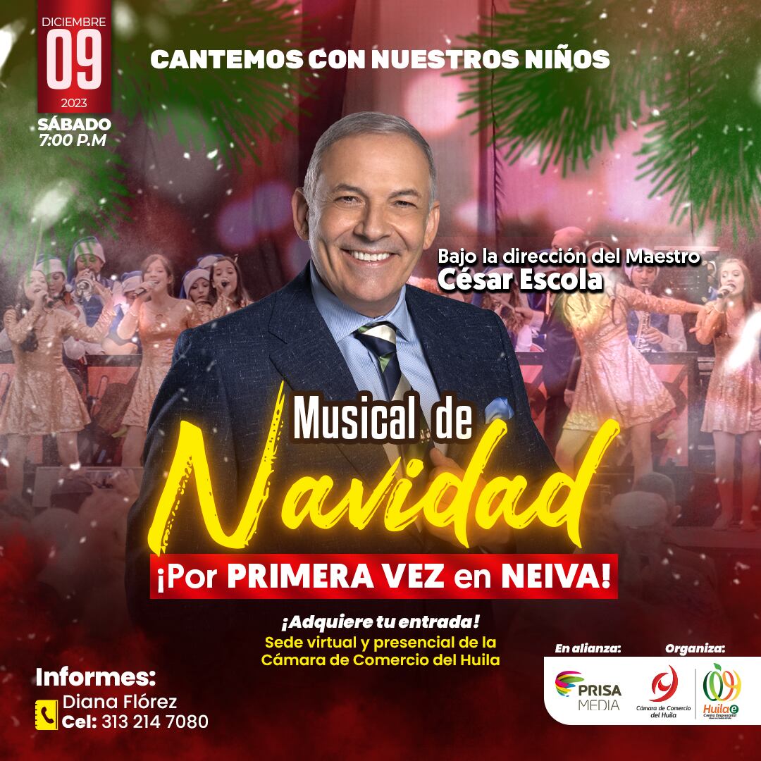 Este sábado 9 de diciembre, en Huila e, centro empresarial de la Cámara de Comercio del Huila, se llevará a cabo el Musical de Navidad “Cantemos con nuestros niños.