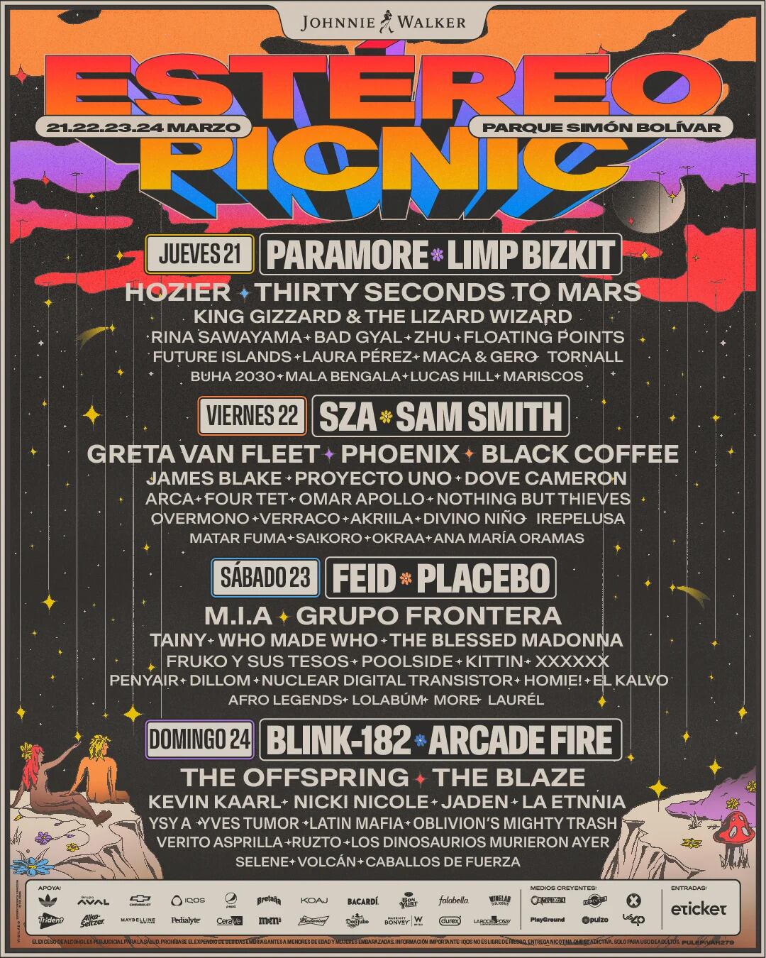 El cierre de la decimotercera edición del Festival Estéreo Picnic será el domingo 24 con el anhelado debut de Blink-182 en Colombia. Junto a ellos veremos a los maravillosos Arcade Fire, el esperadísimo regreso de The Offspring, el filoso baile electrónico de The Blaze, y los atronadores shows de Kevin Kaarl, Nicki Nicole, Jaden, YSY A, Yves Tumor y muchos más.