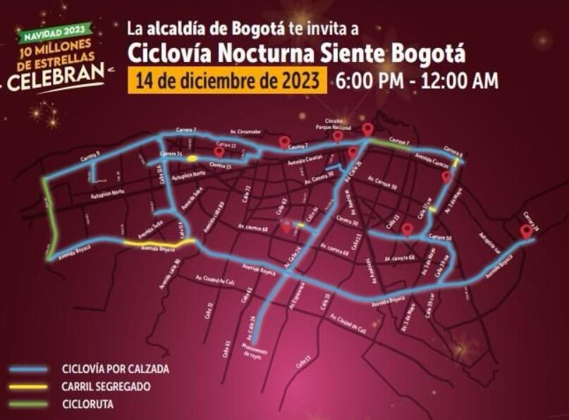 Conozca os recorridos habilitados para aprovechar esta tradicional ciclovía que estará rodeada de eventos culturales y alumbrados navideños