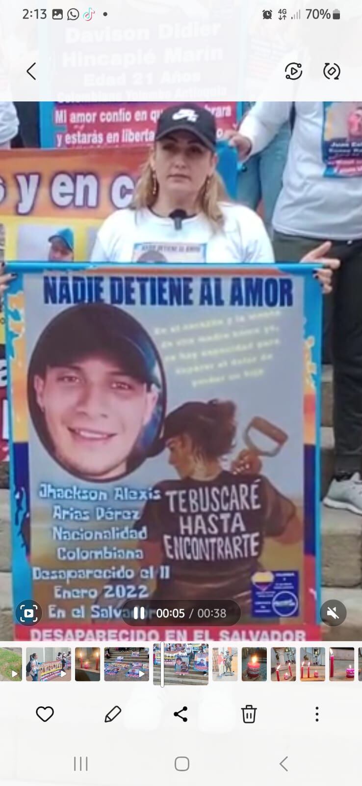 La desesperada madre manifestó que lo espera que las gestiones del gobierno colombiano ante el gobierno de El Salvador puedan hacer justicia en ese país donde al parecer ya habrían capturado a los responsables del crimen, ubiquen el cuerpo de su vida y permitan la repatriación para darle cristiana sepultura.