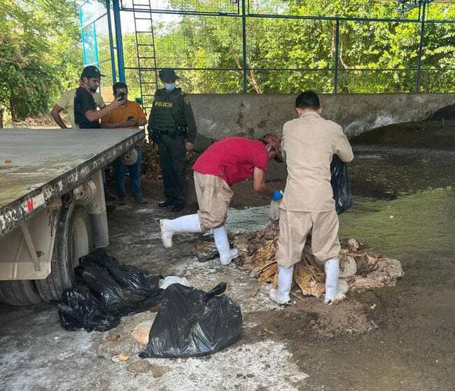 Hasta la carrera 7 con calle 23 del barrio Sevilla llegaron los uniformados de la Seccional de Carabineros y Protección Ambiental y Recursos Naturales en compañía de la secretaria de salud, con el fin de realizar la incautación de aproximadamente 150 kilos de carne en estado de descomposición.