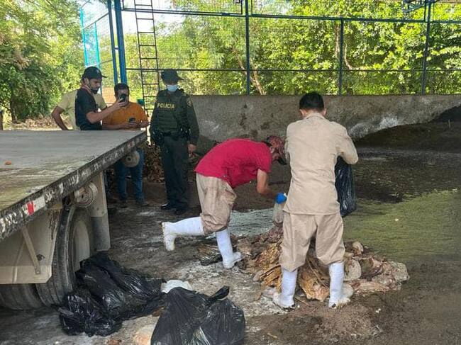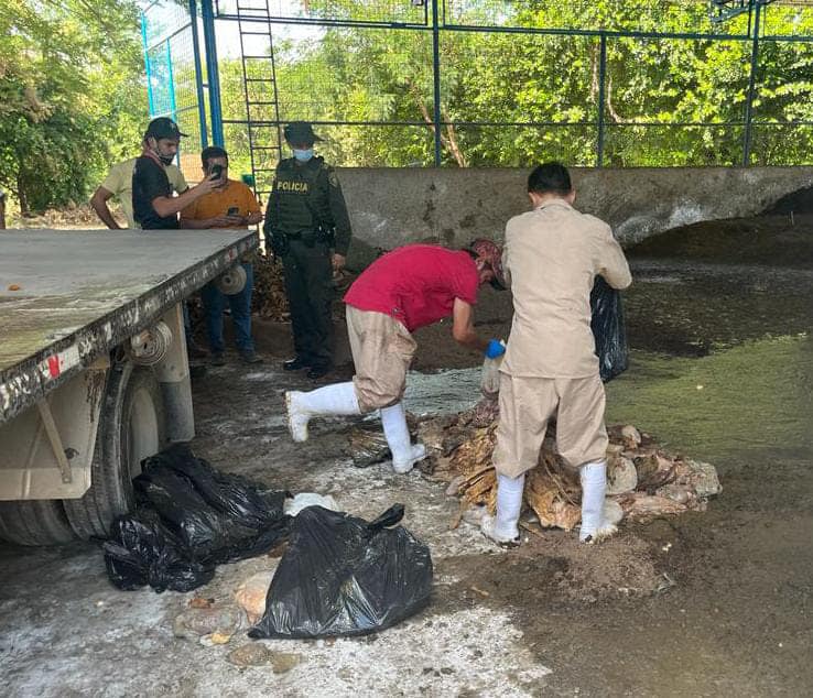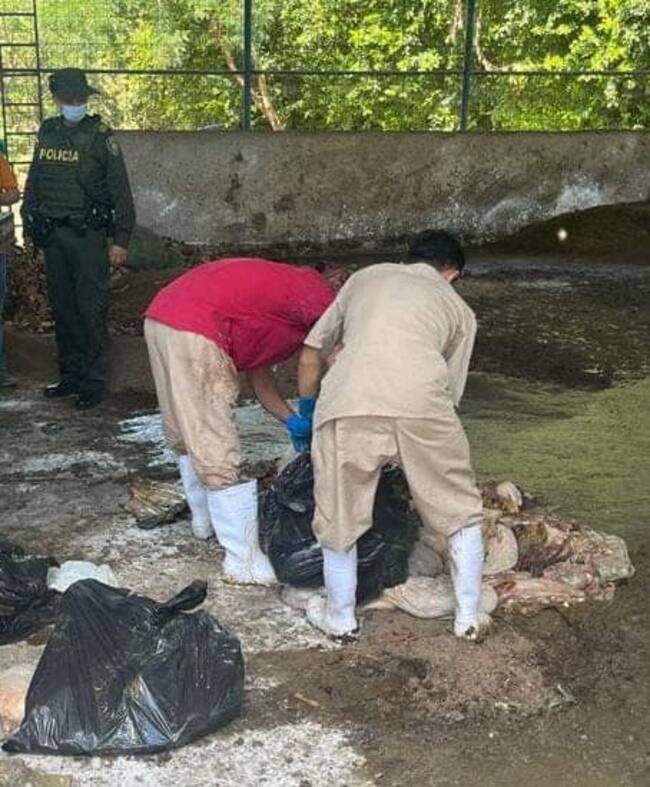 Hasta la carrera 7 con calle 23 del barrio Sevilla llegaron los uniformados de la Seccional de Carabineros y Protección Ambiental y Recursos Naturales en compañía de la secretaria de salud, con el fin de realizar la incautación de aproximadamente 150 kilos de carne en estado de descomposición.