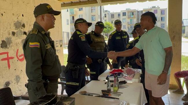 En este desarme voluntario realizado en estos barrios priorizados, se entregaron 24 armas cortopunzante, entre machetes y cuchillos, cinco armas de fuego de fabricación artesanal tipo solito, logrando que 60 jóvenes en riesgo se comprometan ante la comunidad para no generar hechos que afecten la convivencia y tranquilidad de sus comunidades.