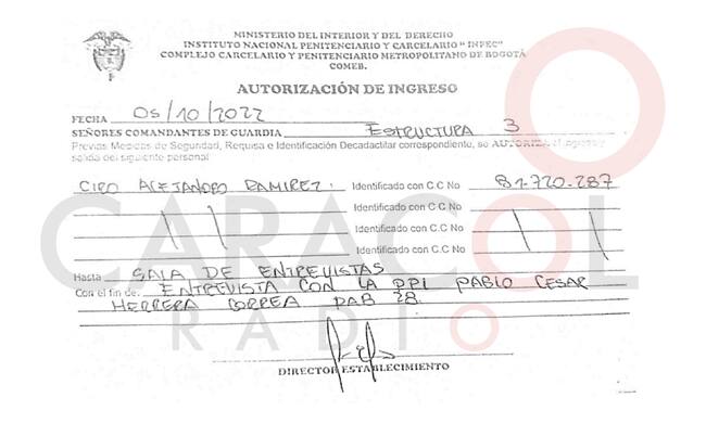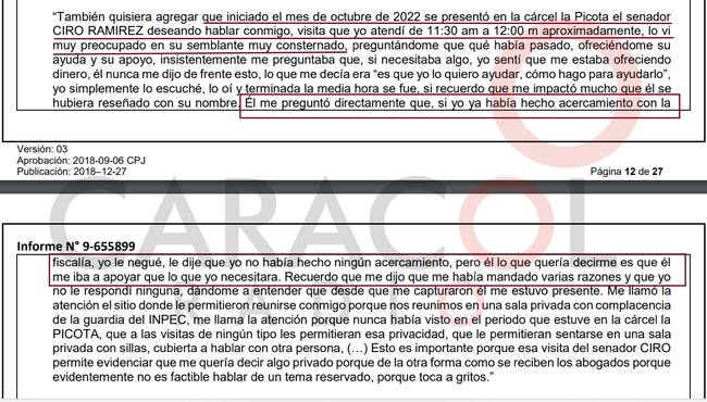 Los registros de la visita del senador Ciro Ramírez, al testigo principal del caso de corrupción "Marionetas", en la cárcel La Picota.