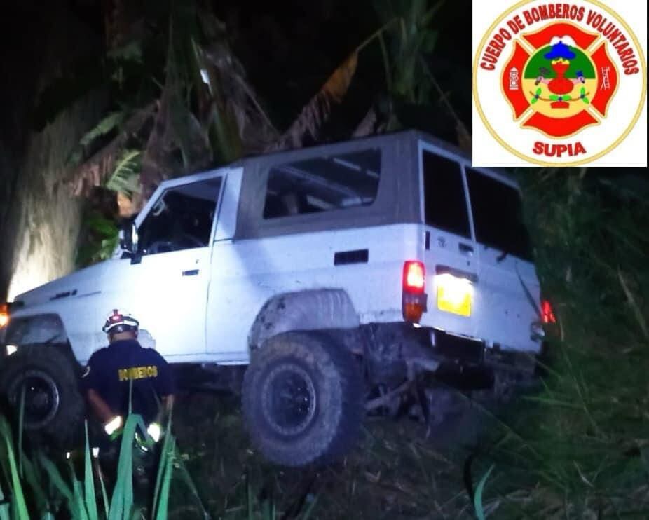 En la vía Manizales - Medellín un vehículo tipo campero rodó por una ladera y cayó cerca a las aguas del río Cauca a su paso por el municipio de Supía, en el incidente una persona resultó herida.