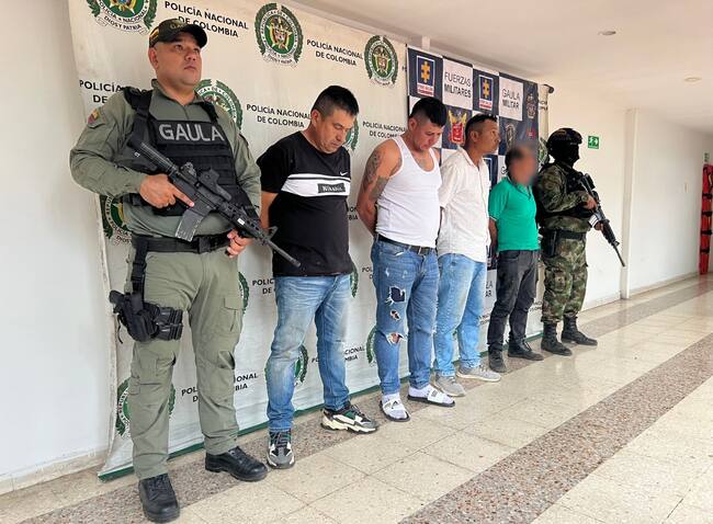 Neiva. La Policía Metropolitana de Neiva en trabajo articulado con el Ejército Nacional, logran la captura en flagrancia de cuatro hombres por el delito de Extorsión.
