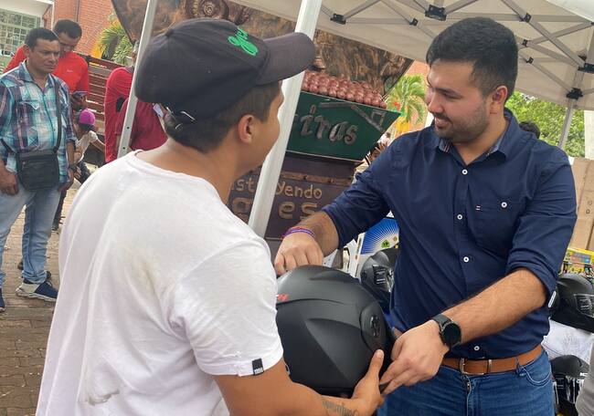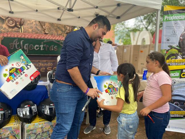 Los algecireños cumplieron con la cita acordada en el parque principal de su municipio, donde además de disfrutar de una charla sobre normas de tránsito, la campaña finalizó con la entrega masiva de 200 cascos de protección.