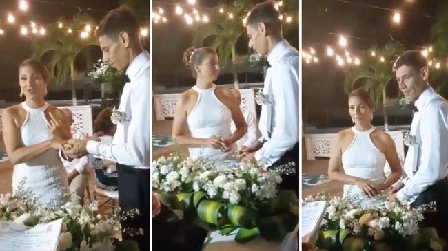 En el video difundido en redes sociales, se alcanza a escuchar que la novia dice: “no sé por qué hubo inconvenientes, precisamente hoy”.