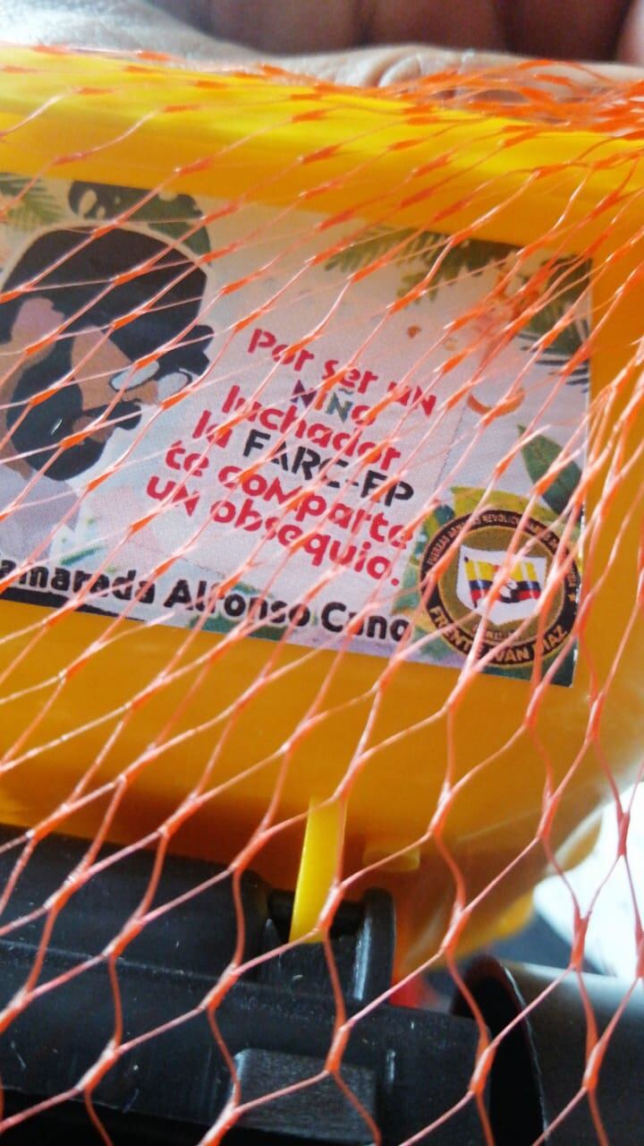 “Por ser un niño luchador, las Farc Ep te comparte un regalo”, mensaje que evidencia las pretensiones delictivas de estas organización que actúa al margen de la ley, violando los derechos de los niños huilenses.