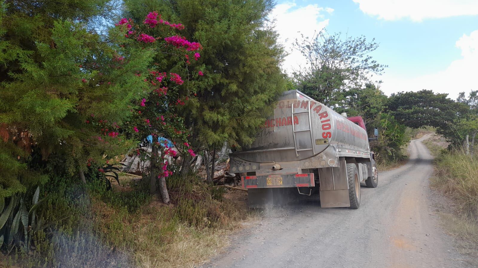 Con carrotanques está abasteciendo de agua el Cuerpo de Bomberos de Barichara a los habitantes de la zona rural de este municipio.