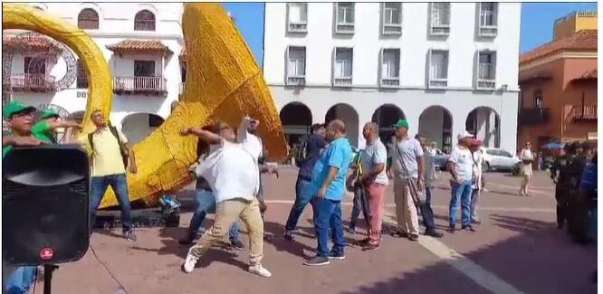 “Agradecemos a los trabajadores culturales que también nos acompañan y que están inconformes con la política de Dau, que contrató en las fiestas de noviembre a un operador de Medellín. Qué sinvergüenzura, desplazando a los propios, a los nuestros. Dau contrató y desplazó a los trabajadores nuestros. “Fuera Dau, fuera su política, opresión y desconocimiento a la gente propia de Cartagena”, se escucha en el audiovisual.