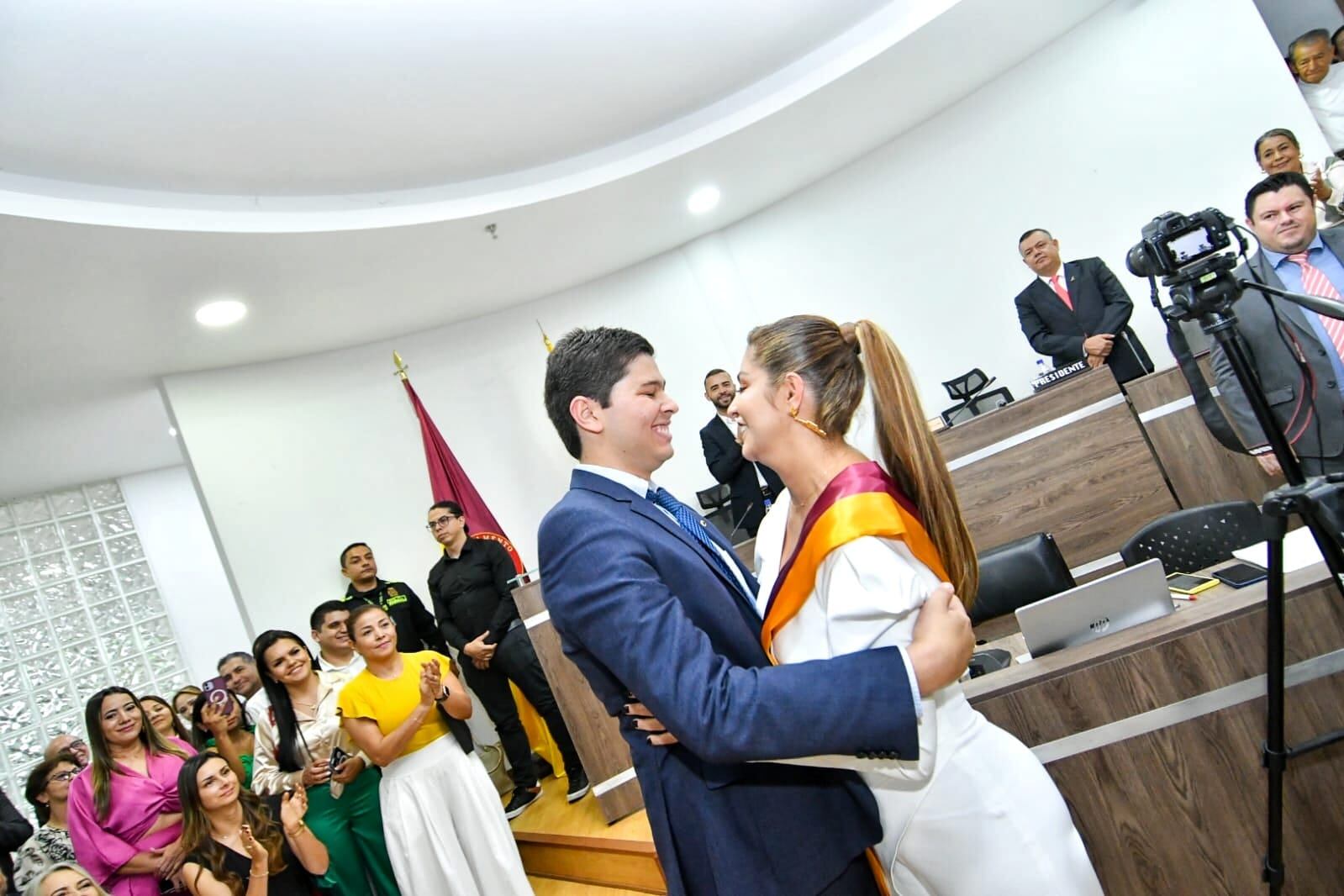 El presidente de la Asamblea Felipe Ferro fue el encargado de tomar el juramento a la nueva mandataria quien lucía un traje blanco y decidió que fuera su hijo quien le impusiera la banda Vinotinto y oro que la acredita como mandataria seccional.