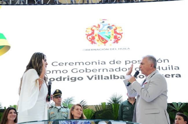 Seguridad, vías y energía sostenible fueron algunos temas claves en la posesión del gobernador del Huila, Rodrigo Villalba Mosquera, en un solemne evento llevado a cabo en la Plaza de Banderas de la Gobernación del Huila