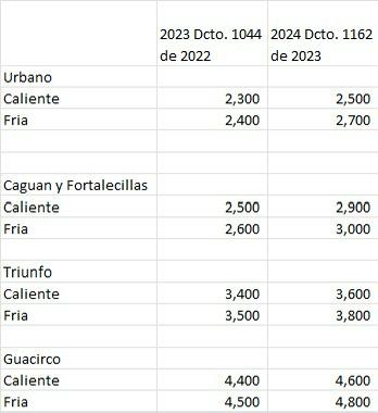 Incrementos de $200 y $300 según Decreto 1162 del 2023 para la capital opita.