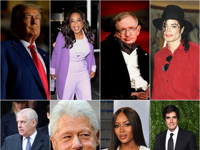 Algunas de las personalidades mencionadas en los documentos relacionados a Jeffrey Epstein: Donald Trump, Oprah Winfrey, Stephen Hawking, Michael Jackson, el príncipe Andrés, Bill Clinton, Naomi Campbell y David Copperfield. (Foto: Caracol Radio)