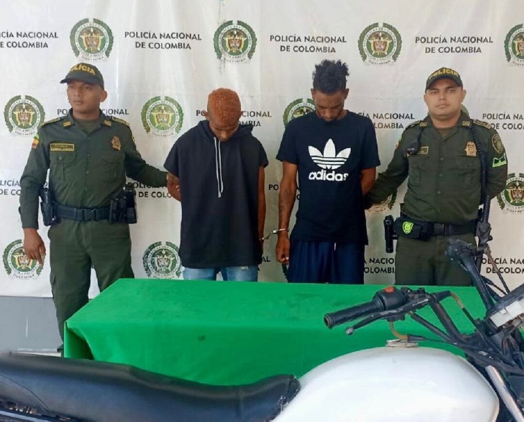 Los sujetos fueron capturados en la calle 88 con carrera 4, en el barrio San Luis luego que una persona había abordado a una patrulla de la Policía señalando que dos personas estaban intimidando a un comerciante del sector por el pago de una extorsión.