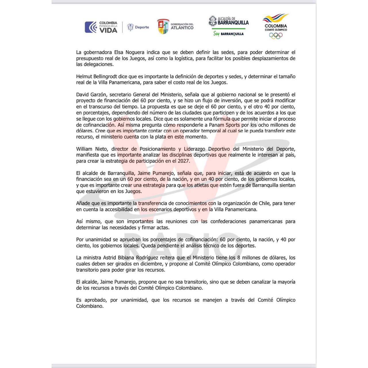 Los logos del Gobierno de Colombia, el Ministerio del Deporte, la Gobernación del Atlántico, la Alcaldía de Barranquilla y el Comité Olímpico Colombiano adornan el acta, subrayando la legitimidad y oficialidad del documento. La firma de la ministra del Deporte, Astrid Bibiana Rodríguez, en el cierre del acta, añade un elemento irrefutable a la revelación, dejando claro que la máxima autoridad deportiva estaba plenamente consciente de la situación financiera desde hace meses.
