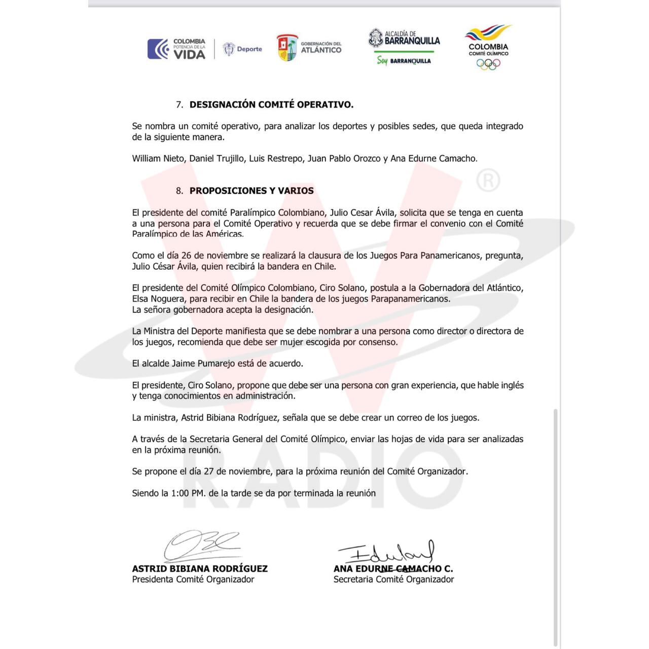 El documento publicado por la W está firmado por la ministra del Deporte, Astrid Bibiana Rodriguez Cortes.