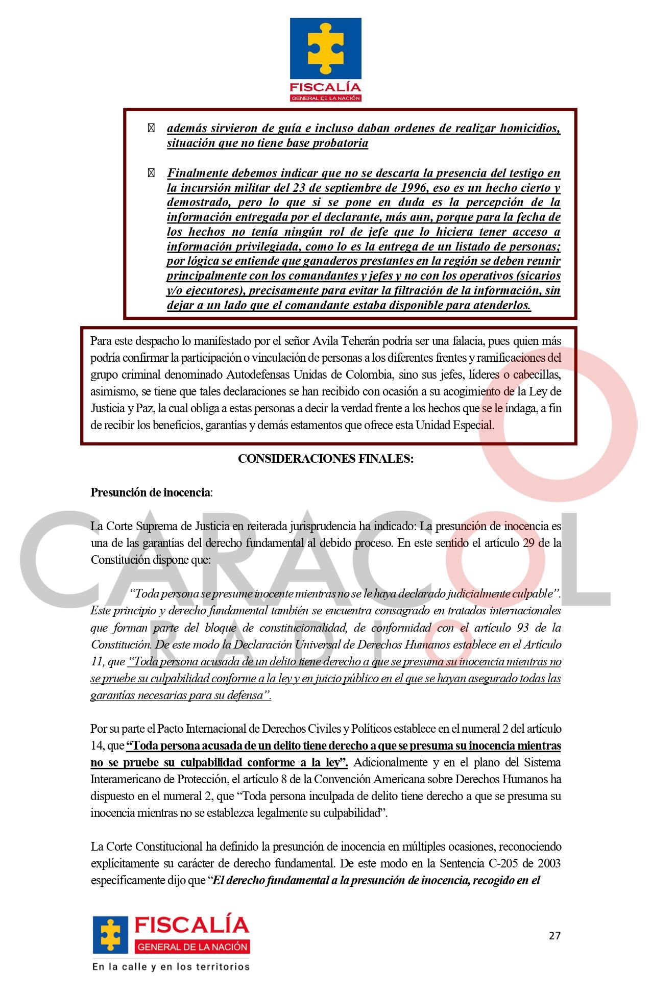 Sin embargo, la Fiscalía interrogó a todos los paramilitares que participaron en ese crimen y concluyó que los señalamientos son mentira.